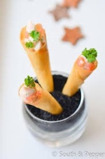 Dit verrassende hapje bestaat uit gekookte en krokant gebakken pasta met een mousse van gerookte zalm