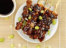 Voor yakitori wordt heel klein gesneden kippen¬bout gebruikt, dat vlees is wat malser dan kipfilet.