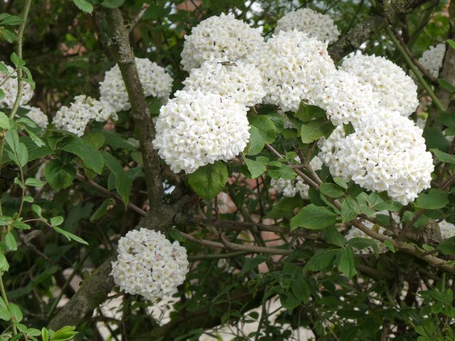 Kwam gisteren veel bomen tegen de sneeuwbal (viburnum tinus)de witte tot rose geven een aangename geur als je er langs loopt