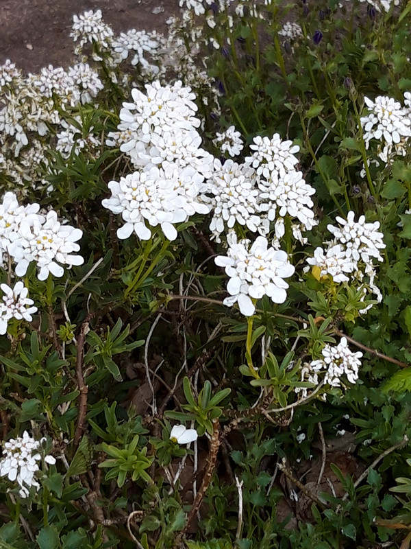 Deze bloemetjes bloeien in mijn tuin onder de tafel. De campanula komt ook al op. |