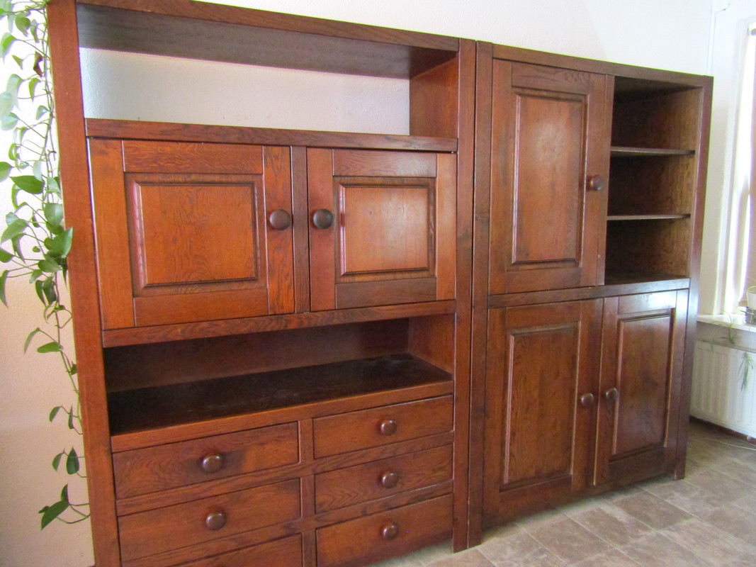 Die kast houden was geen optie. Te groot en te log en het risico dat er weer een deur uit valt is te link. Plus het past totaal niet bij onze nieuwe meubels.