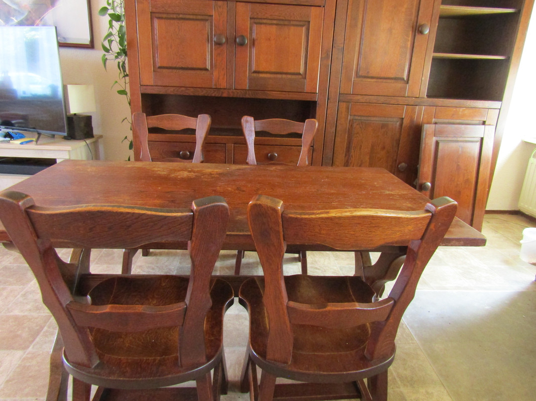 Op het scheiden van de mert kwam nog iemand de eethoek ophalen. Alleen de eiken kast is wel uit elkaar geslagen. Dat deed mij toch wel pijn aan het hart, want het was echt een mooie kast.