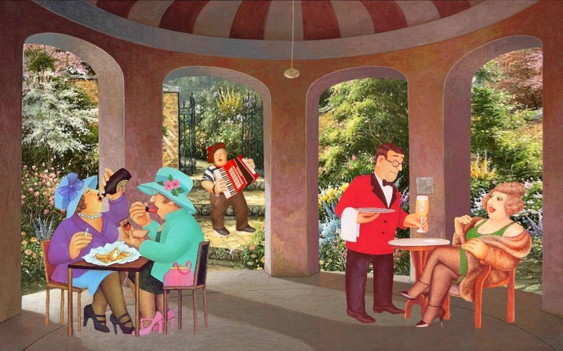 de dikke dames zitten te genieten