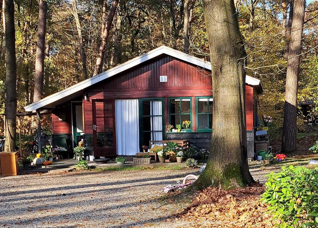 Foto lijkt wat scheef te staan, zal misschien een halve tot hoogstens een graad zijn, maar de grond loopt daar daadwerkelijk wat af. Ik kan me nog herinneren dat binnenshuis een balletje van de katten altijd naar links rolde, dus de vloer was verre van waterpas, hoewel met stutten onder de draagbalken wel grotendeels gecorrigeerd. Het was toen al niet het slechtste huisje en relatief ruim maar toen totaal niet geisoleerd. Ik ben op op weg naar mijn werk op een wintermorgen uitgegleden op de ijslaag in de douche toen ik de warmwaterkraan even gauw aan wilde zetten om de boel wat op te warmen... In de loop van de tijd is er al eerder gelukkig wel wat verbeterd in al die huisjes daar op het terrein. Lijkt allemaal aardig, voor tijdelijk, zeker als je als alternatief alleen maar de buitenlucht hebt, maar riante villa's zijn die houten hutjes zeker niet.