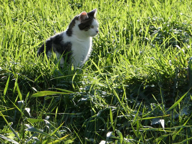 Prachtige en leuke foto van poes, die had vast de aandacht bij iets wat ze zag , bijvoorbeeld een kikkertje of muisje of een jong vogeltje .