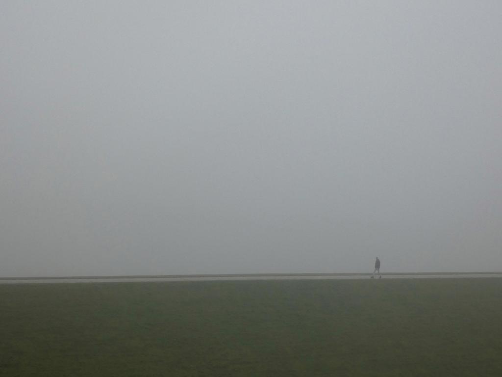 Greet bij jou echt mistig zeg en zie toch nog iemand over de dijk lopen