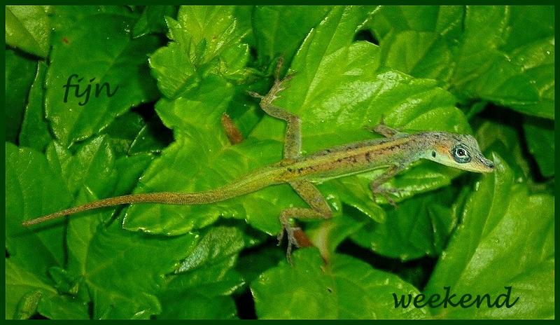 Mellina een leuke weekend wens met deze kleine Anolis vast nog van een vakantie.