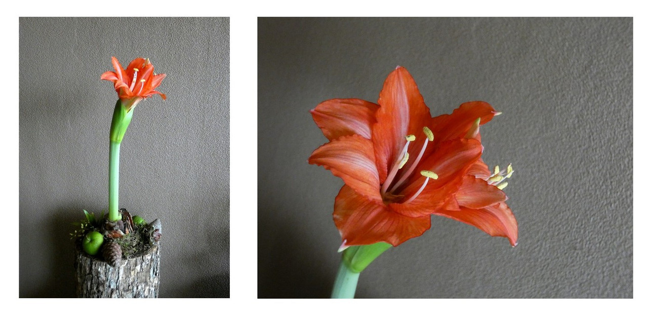 Mijn eerste Amaryllis ( van dit seizoen ) staat in bloei .