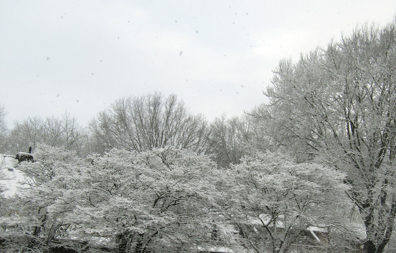 Het sneeuwt hier nu niet, maar later op de dag wordt wel weer een en ander verwacht. Straks ga ik er toch even uit, met snowboots. Er dienen wat boodschappen gedaan te worden, al kan dat ook tot morgen wachten, we hebben nog genoeg te eten in huis.