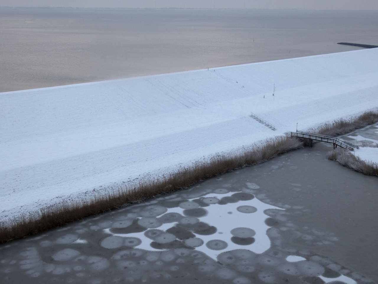 Greet, kijk maar uit met die fiets. Het sneeuwt nog steeds, je kunt wel blijven strooien. Mooie foto van dat kunstwerk op het ijs. Ik moest even zoeken, maar toch gevonden natuurlijk.