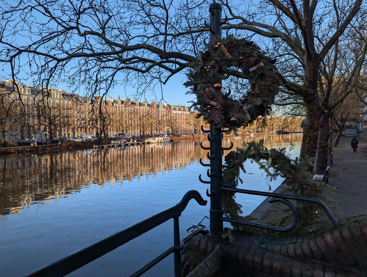 Wow wat een prachtige foto . De weerspiegeling , zo mooi en ook de kransen in de boom ziet er heel mooi uit .