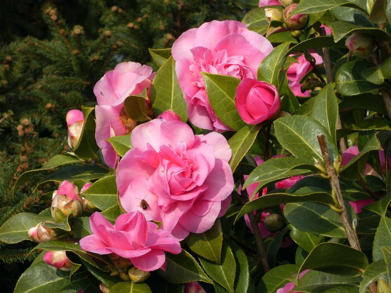 De camelia , volop in bloei .