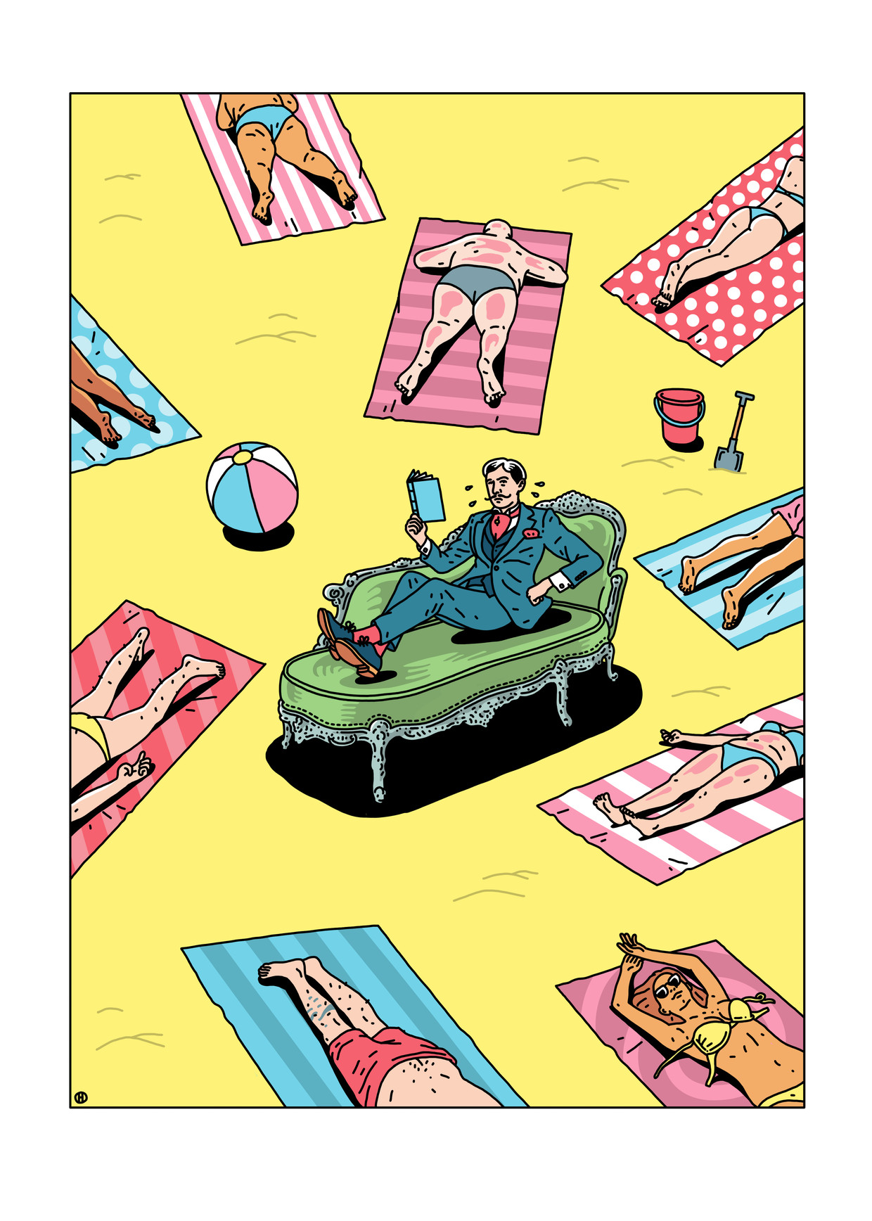 In de Volkskrant van gisteren een bijdrage over het lezen van Proust op het strand. Daar stond een tekening bij van 2 vrouwen en 5 mannen. 2 in een short en 3 in een zwemslip, waarvan 1 echt klein.